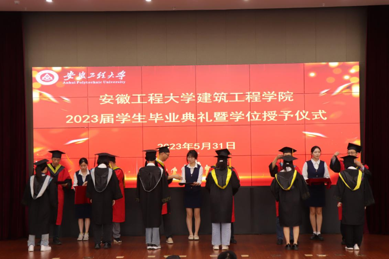 5月31日,建筑工程学院2023届学生毕业典礼暨学位授予仪式在图书综合楼五楼报告厅隆重举行,400多名师生欢聚一堂,以典礼见证学生的成长与收获,开启毕业生新的旅程与辉煌。校党委常委、副校长郑健,建筑工程学院党政负责人李烨、曾磊、张礼波、张金轮、曹兵,各系部负责人、教师代表、毕业班辅导员等出席典礼。典礼由院党委副书记张礼波主持。