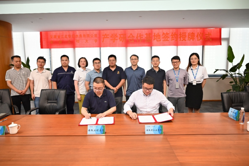 为了更好的提升建筑工程学院人才培养、科学研究和社会服务能力,6月14日下午,建筑工程学院一行赴安徽省江北华衍水务有限公司举行校企合作协议签约暨授牌仪式。安徽省江北华衍水务有限公司总经理赵吉、副总经理姜成浩;芜湖市住建局公用事务处处长李鹏;建筑工程学院院长曾磊、副院长张金轮、市政工程系主任阮仁俊等人出席仪式,会议由赵吉主持。
