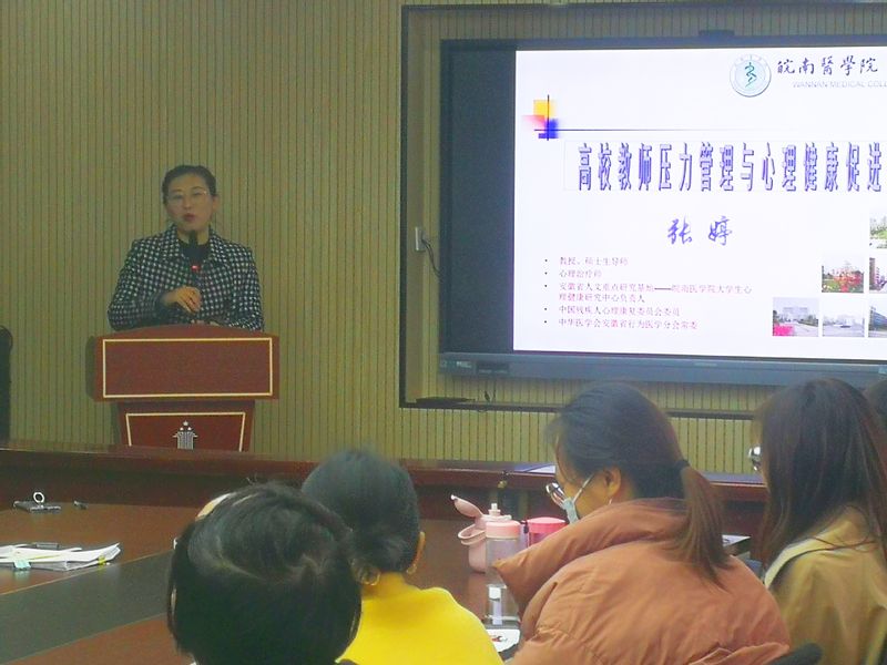 为了切实加强教职工心理健康教育,引导高校教师正确认识和对待压力,形成积极向上、健康活泼、乐观进取的生活方式和工作态度,切实提高压力管理能力和心理健康水平,11月29日,在校心理健康教育中心的大力支持下,皖南医学院心理学教授、硕士生导师、心理治疗师张婷应邀为建筑工程学院全体教职工作“高校教师压力管理与心理健康促进”专题讲座。讲座由学院党委书记李烨主持。