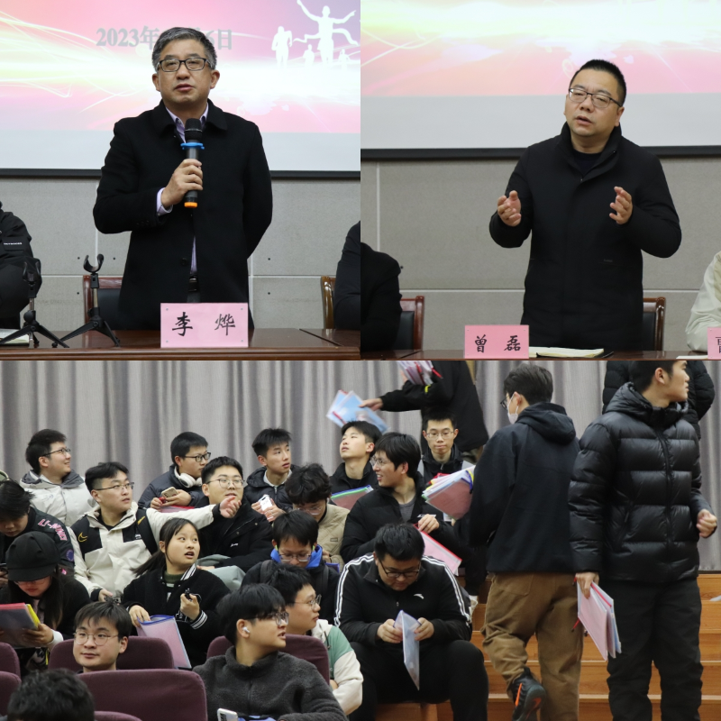 李烨结合考研形势对同学们提出了三点希望,一是思想上坚定信心,无论遇到了什么困难,都要抗住压力,坚持不懈;二是心态上平稳放松,调整好作息时间,把身体和心理调整到最佳状态;三是勇毅前行,大胆往前走。学院始终是同学们的坚强后盾,将会在各方面为学生复习备考保驾护航。他鼓励同学们务必要持之以恒跑完考研战场最后“一公里”,成功上岸。曾磊结合学院历来考研情况,对同学提出三点关心:一是正确认识考研,从基础开始,扎实学好专业,实现自身的超越;二是明确考研的初心,建议学生注意复习技巧、分科施策、精准备考、灵活应对;三是学会坚持,自信迎接考研,同时提醒学生注意保暖和个人生活作息,合理调整好自身心理和身体状态;