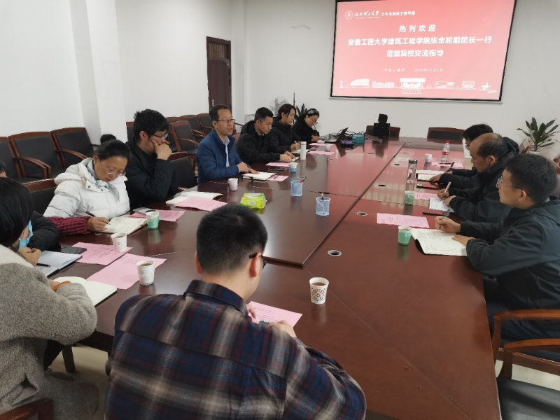 12月4日,为推进学院给排水科学与工程专业教育评估(认证)工作的有序开展,副院长张金轮、市政系主任阮仁俊、骨干教师一行前往江西理工大学土木与测绘工程学院就给排水科学与工程专业教育评估工作进行交流学习。江西理工大学土木与测绘工程学院副院长汪小平、科技处副处长朱易春、市政系主任李新东、市政系教师代表出席了交流会。