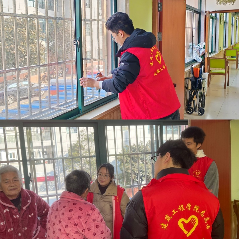 走进春晖园养老院。建筑231班团支部开展“以爱心,温暖迟暮老人”敬老系列活动,大力弘扬中华民族尊老、敬老的传统美德和奉献、友爱的志愿服务精神。养老院里,志愿者与老人们谈心声、拉家常,通过亲切交谈了解老人们的生活情况、身体状况。经过聊天互动“破冰”,学子们与老人们慢慢拉近了距离,主动地为老人们打扫卫生、整理房间,用朴实而真诚的行动表达着对老人们的关爱。