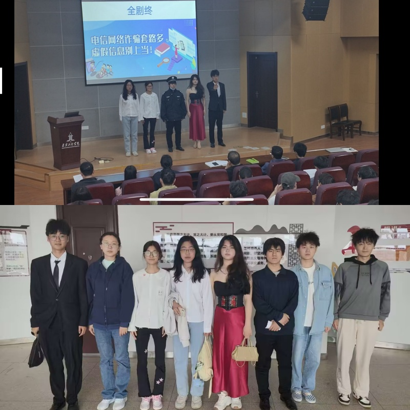 活动伊始,院文艺团的同学自创自演了情景剧《陷阱》演绎了校园生活中常见的电信诈骗案例,警示大学生“电信网络诈骗套路多,虚假信息别上当”。