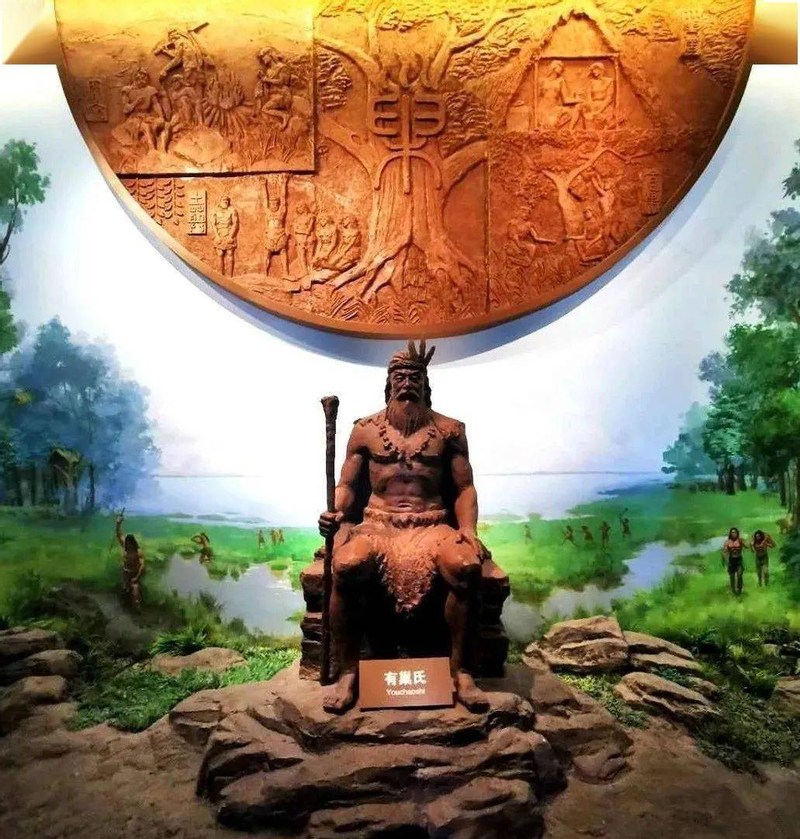 (图2 有巢氏雕塑)