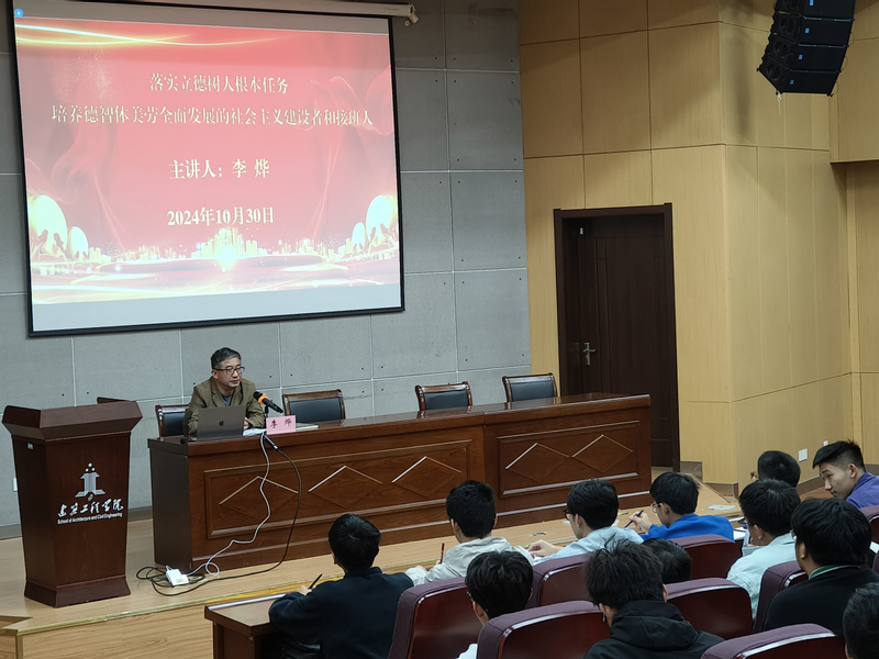 为进一步落实落细“三抓”工作要求,推深做实“三全六专”育人实践,坚定理想信念,加强品德修养,促进学生全面发展,10月30日,建筑工程学院党委书记李烨应邀在C座3楼报告厅为第八期“青马工程”培训班学员、团学组织学生干部、青年学生代表作题为《落实立德树人根本任务 培养德智体美劳全面发展的社会主义建设者和接班人》的专题报告。