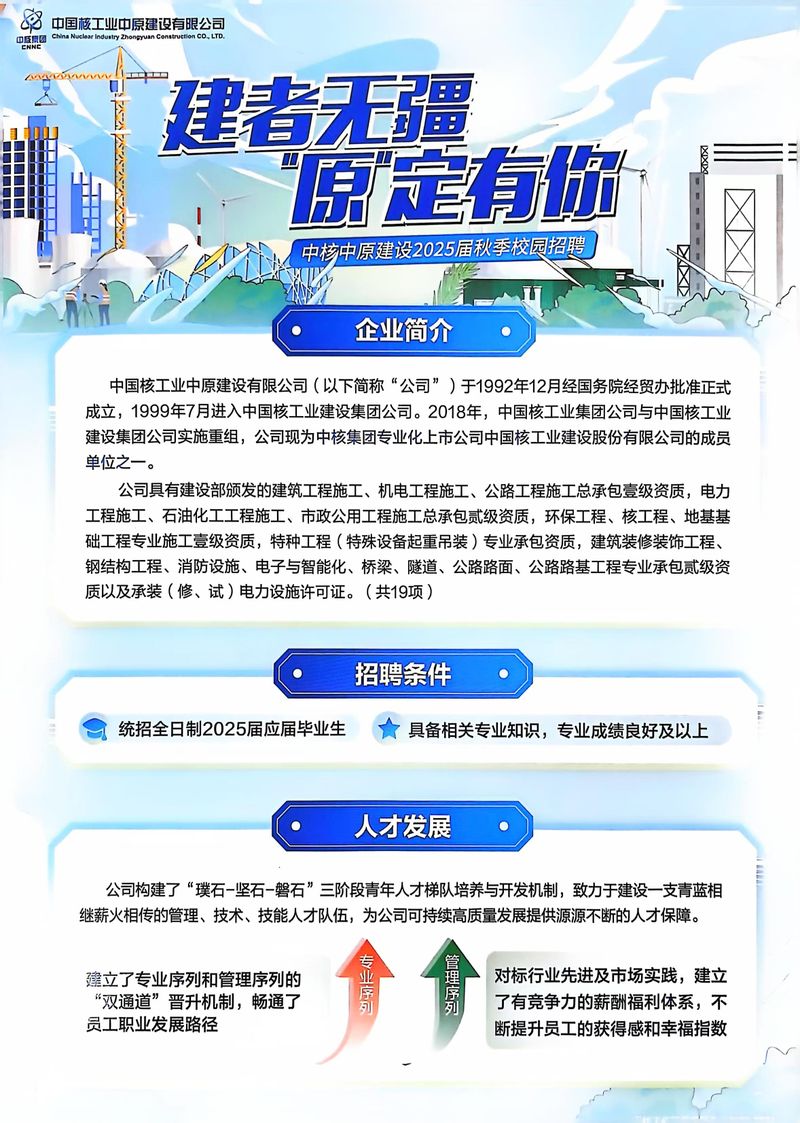 中国核工业中原建设有限公司招聘简章
