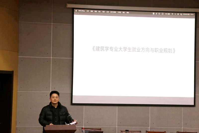 12月9日晚,建筑工程学院在C座3楼报告厅举办就业创业大讲堂暨优秀校友报告会。本次报告会邀请2017届校友王强强,为全体建筑学专业学生作了题为《建筑学专业大学生就业方向与职业规划》的大学生涯规划和就业创业报告,院党委副书记张礼波、院团委书记、辅导员出席并聆听校友报告。