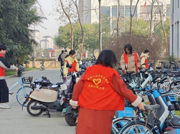 此次活动不仅改善了校园环境,更让党员们深刻体会到自己作为先锋模范的责任与使命,同时也提高了广大同学的文明意识和环保意识。建筑222江浩然表示,在参与这次活动的过程中,我深切感受到每一次扶正一辆单车,每一次引导一位同学规范停车,都是在传递文明的信号。