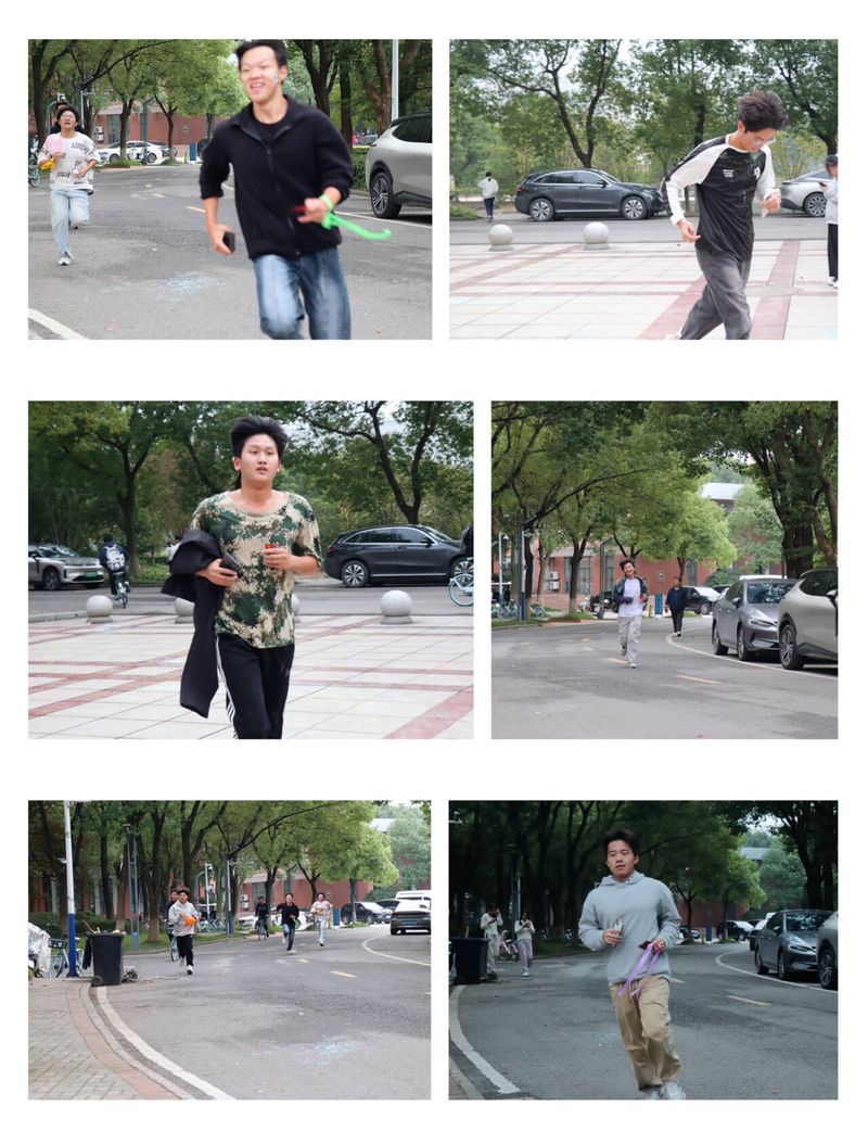下午三时,发令声响,五彩粉末在空中绽放,一场穿越时空的青春奔跑正式开启。参赛学子从C座一楼广场出发,沿着以重大历史节点精心设计的“时光跑道”快乐奔跑。在1949年“建国站点”,同学们以红歌接力的形式,用嘹亮歌声颂扬红色精神;在1978年“改革开放站点”,大家通过盲盒抽题,踊跃回答改革开放史相关问题,在趣味互动中深化对党史的理解;在2012年“新时代站点”,参与者手持球拍垫乒乓球稳步前行,寓意在新时代砥砺前行的坚定步伐。三个特色站点巧妙串联起新中国发展的光辉历程,将党史教育、体育竞技与团队协作完美融合。奔跑队伍犹如一道流动的彩虹,青春的欢笑与历史的回响交织在校园的每个角落,构成一幅传承与创新交相辉映的生动画面。