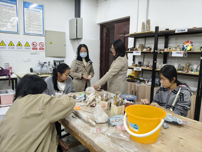 为确保活动高效推进,学院建立“专项联系人+学长导员+领导参与”的三级保障机制。俞梦璇老师负责C120、C224实验室协调,孙俊伟老师、周华聪老师、杨丽老师分别对接C203、C209、C405实验室,全程提供专业指导;学长导员曹博凯带领新生互动交流,深化专业理解;学院党委副书记吴敏还参与木工、陶艺体验环节,与新生共话专业发展,让新生在认知体验中增强对我们学院专业的认同感。