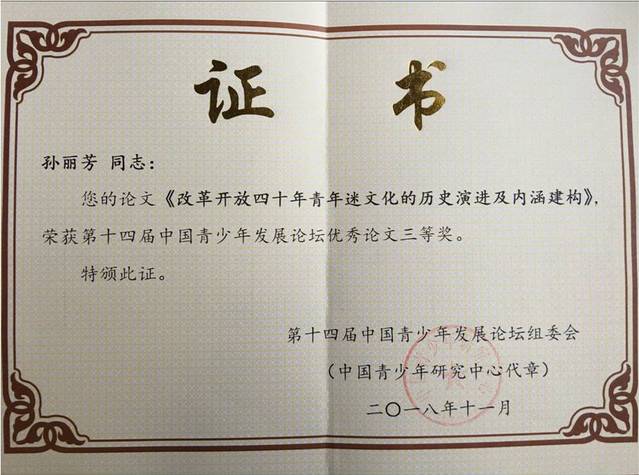 近年来,孙丽芳博士致力于校园文化、青年文化、思想政治教育话语权的研究,获批包括国家社科基金项目在内的国家级、省部级项目多项,发表20多篇具有前沿性的理论成果,产生较大的学术影响。此次获奖,是对其学术能力和学术水平的又一次肯定。