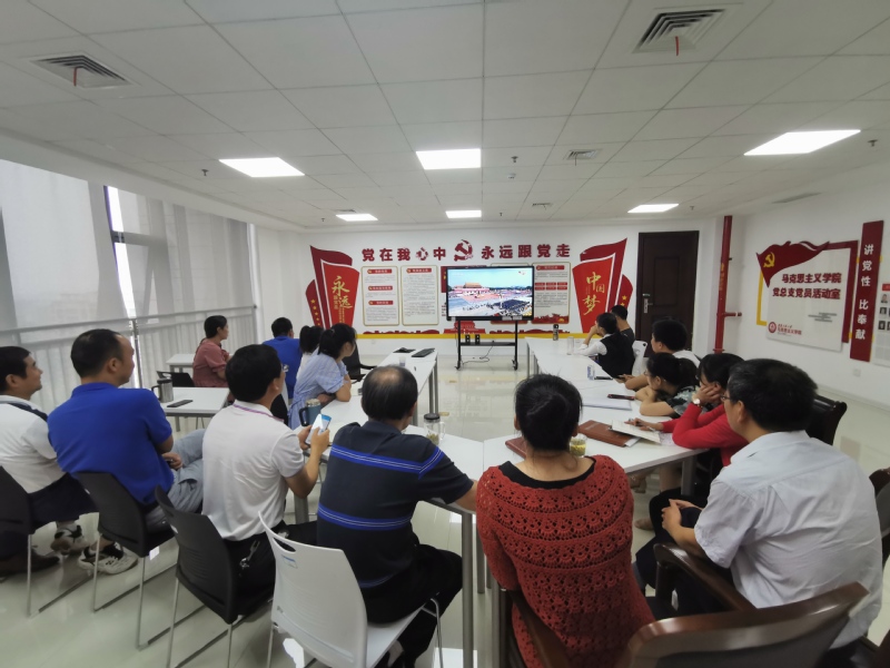 2019年10月1日上午,庆祝中华人民共和国成立70周年大会、阅兵式、群众游行在北京天安门广场隆重举行。中共中央总书记、国家主席、中央军委主席习近平出席大会并发表重要讲话。马克思主义学院师生在学院党员活动室集中收看直播盛况。