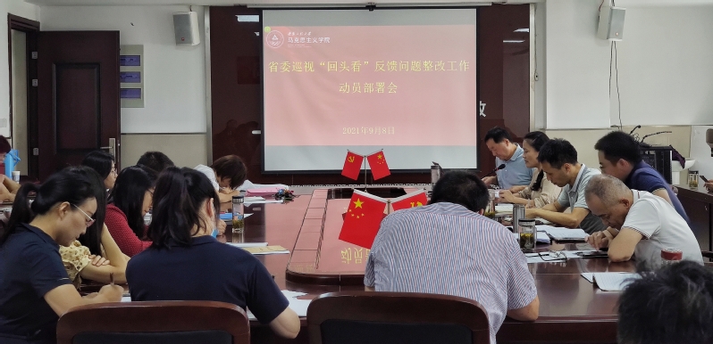 9月8日下午,马克思主义学院在T1512会议室召开师德师风专题教育会议暨省委巡视“回头看”反馈问题整改工作动员部署会。学院全体教职工参加会议。会议由学院党总支书记孙浩然主持。
