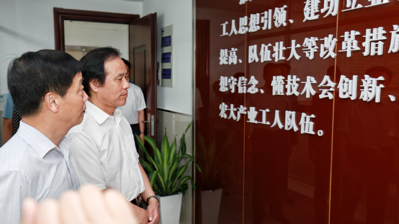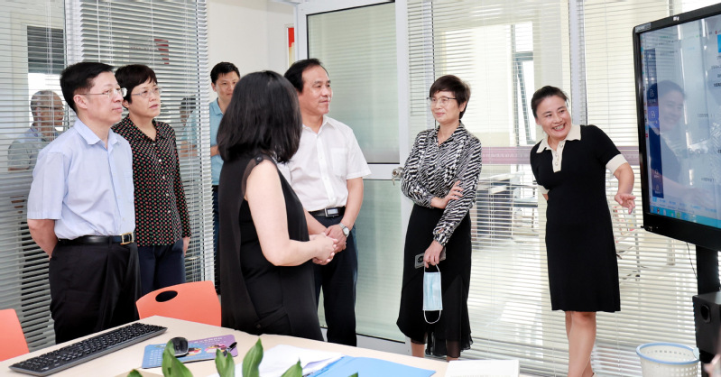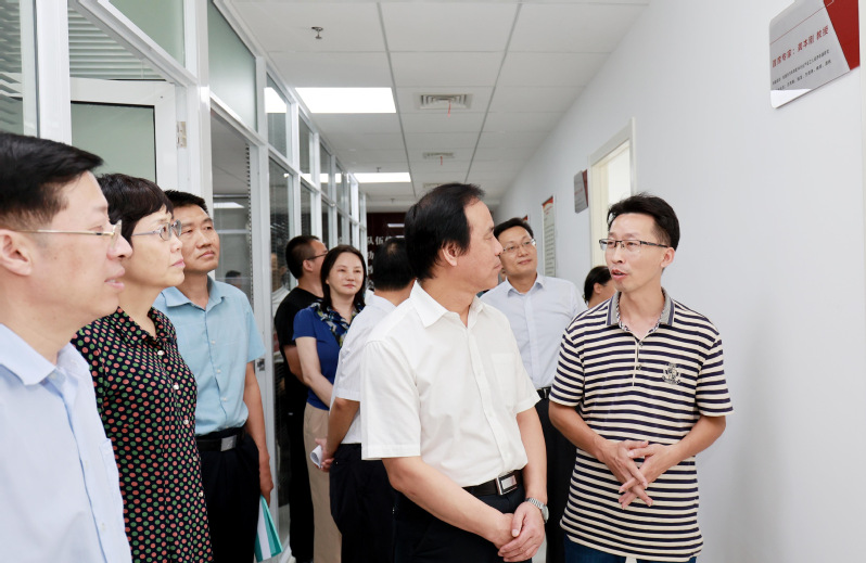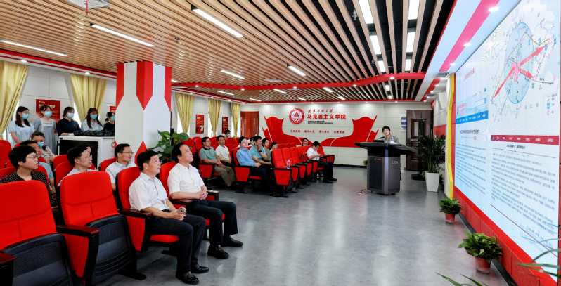 高凤林一行首先来到研究中心办公室,了解了中心机构设置情况,参观了专家工作室和交流研讨室,仔细询问了中心的工作开展情况,对中心正组织开展的研究课题表现出浓厚兴趣,不时停下脚步与中心研究人员进行沟通交流,详细了解相关研究的进展情况。随后,一行人员察看了马克思主义学院教工之家和VR虚拟仿真实践中心,体验了运用VR虚拟仿真技术开展产业工人队伍思想政治工作。
