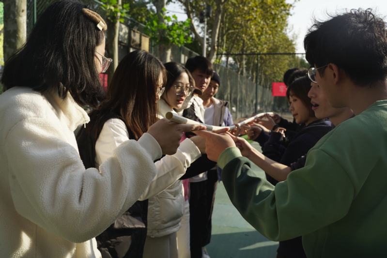 11月13日下午,阳光明媚,在我校香樟营地和水杉营地,一场别开生面、气氛浓厚的思想政治理论课体验教育课在这里热烈展开。来自2019级各个专业的学生代表近百人参与了本次课程。课程由体育学院体验产业学院执行院长薛保红负责,我院金承志、夏雨清两位老师协助参与。