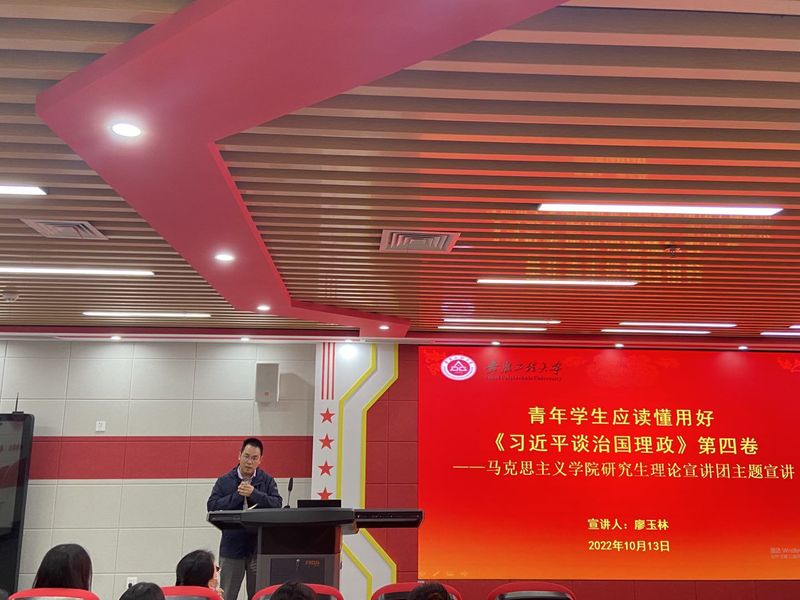 马克思主义学院研究生理论宣讲团成员、支部委员廖玉林以“青年学生应读懂用好《习近平谈治国理政》第四卷”为题开展宣讲。她从《习近平谈治国理政》第四卷内容背景谈起,重点就我们青年学生为什么学、怎样学等方面展开宣讲,让同学们从理想信仰、时代责任、学以致用等多角度有了深切的感悟。