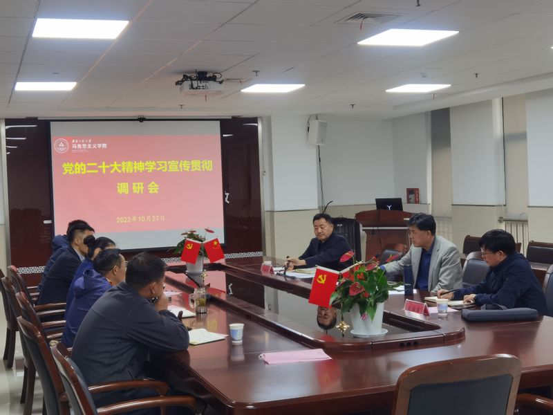 10月27日上午,校党委书记张志宏来到马克思主义学院,在图书综合楼1512会议室,召开所联系的马克思主义学院和体育学院党总支班子会议,调研指导学院学习宣传贯彻党的二十大精神工作。校党委常委、宣传部部长孙浩然,校办公室副主任朱洪浪陪同调研。