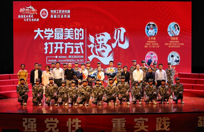 大学期间,“要不断提升沟通力、学习力、自律力”,“今日记一事,明日悟一理,积久而成学”,“要以十年磨一剑的韧劲和一辈子办成一件事的执着,培养好奇心,提升创造力”,要“始终秉承‘干一行,专一行’的理念,始终坚信在平凡的岗位上也能做出不平凡的贡献”……4位劳模工匠的精彩分享引起在场师生的强烈共鸣。马克思主义学院党总支书记刘伟说:“劳模工匠们分享的成长与奋斗历程,展现出了他们可贵的奉献精神、劳动精神和创新精神,给我们大学生上了一堂生动的、有温度的思政课。”机械工程学院交通231孙斌说:“这次活动让我对工匠精神有了更深的了解,对工人更加的敬佩。劳动模范的发言鼓舞人心,精彩歌舞让我感受到青春的活力。作为新时代青年,我们应该用实际行动大力弘扬工匠精神、劳动精神,为学校建设事业贡献自己的力量,为祖国添砖加瓦。”化学与环境工程学院应化232张浩楠说:“劳模们的故事激励着我,让我坚定了自己的追求,我将努力学习,锻炼自己,为实现自己的梦想努力奋斗。同时,我也将学习他们的优秀品质,努力培养自己的坚持、奉献、团队合作和创新精神。”