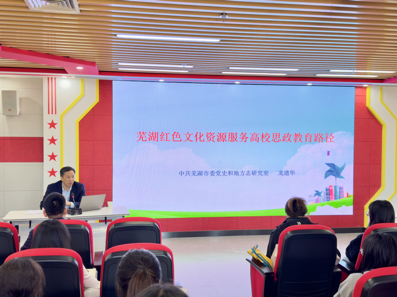 为加强学科平台建设,发挥地方红色资源在教学、科研和人才培养中的作用,11月6日下午,皖江红色文化研究中心邀请中共芜湖市委党史和地方志研究室副主任龙遗华作题为《芜湖红色文化资源服务高校思政教育路径》的报告。报告会由马克思主义学院副院长李海涛主持。