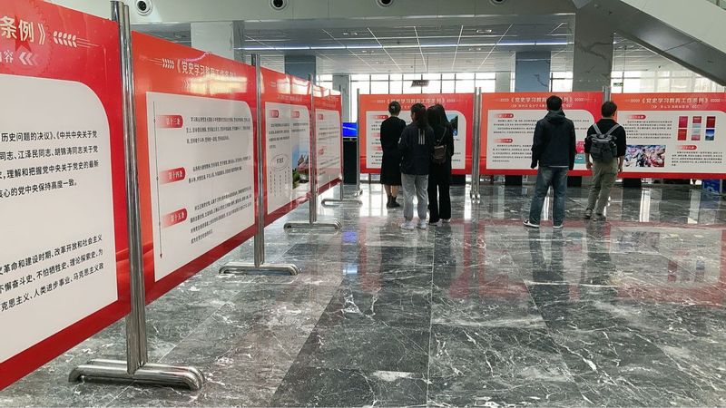 《党史学习教育工作条例》以习近平新时代中国特色社会主义思想为指导,以党章为根本依据,对党史学习教育的领导体制和工作职责、内容、主要形式、保障和监督等作出全面规范,是开展党史学习教育工作的基本遵循。展区设在学校图书馆二楼大厅,共分18块展板,从《党史学习教育工作条例》的总则、领导体制和工作职责、党史学习教育的内容、党史学习教育的主要方式、保障和监督、附则等六部分进行宣传。此次展览持续一个月。