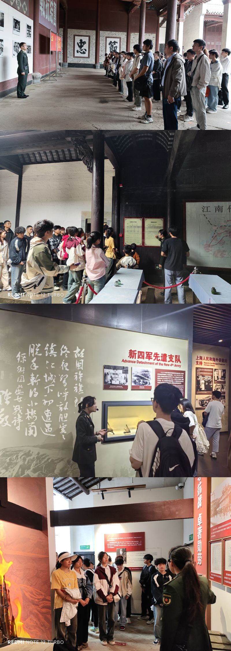 泾县,是一片有着光荣革命传统的红色热土,遍布于这里的红色基因,向世人诉说着中国共产党人在为人民谋幸福、为民族谋复兴的奋斗路上所经历的苦难与辉煌。本次“行走的思政课”以寻访红色印迹为主题,师生分批次先后寻访了新四军军部旧址纪念馆、军部大会堂(陈氏宗祠)旧址、中共中央东南局旧址、皖南事变烈士陵园、云岭红旅特色国防园等纪念馆(园),通过倾听讲解,现场观看历史文物、图片和影像资料和开展红色军事体验项目等,进一步体验和感悟革命先烈们在为中国革命作出的英勇牺牲和不懈斗争,展现了老一辈无产阶级革命家的丰功伟绩。