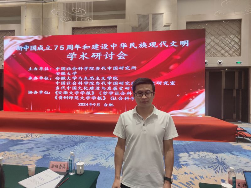 2024年9月21日至22日,“新中国成立75周年和建设中华民族现代文明学术研讨会”在安徽大学举办。会议由中国社会科学院当代中国研究所、安徽大学主办,安徽大学马克思主义学院、中国社会科学院当代中国研究所文化史研究室、当代中国文化建设与发展史研究中心承办,《安徽大学学报(哲学社会科学版)》《贵州师范大学学报(社会科学版)》协办。安徽大学党委书记蔡敬民出席开幕式并致辞,中国社会科学院当代中国研究所副所长宋月红致辞,安徽大学马克思主义学院执行院长吴学琴主持开幕式。我院教师葛伟阳受邀参加此次论坛。