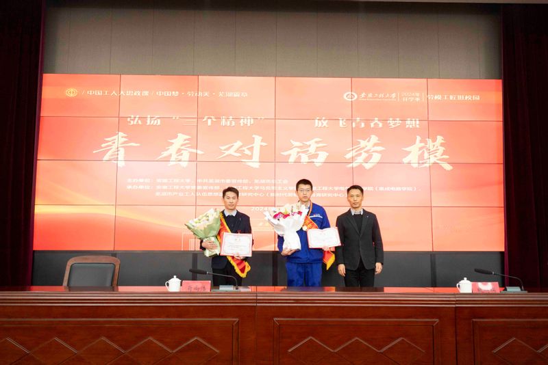 2位劳模分享了他们在岗位上努力拼搏、争创一流的奋斗经历。“学无止境,人生就是一个不断自我充实,自我学习的过程。”“以敬畏之心对待每一份工作,用心去做,平凡之中亦能绽放不凡的光彩。”“人生不会每个阶段都很出彩,但朝理想目标坚持下去,就会拥有出彩人生”。透过朴实无华的语言,与会师生真切感受到两位劳模身上扎根一线、攻坚克难、勇于创新、甘于奉献的精神。
