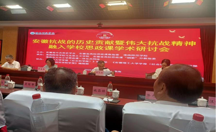 2025年6月27日至29日,安徽省中共党史学会、安徽省高校思政课教指委、淮南师范学院联合举办“安徽抗战的历史贡献暨伟大抗战精神融入学校思政课”学术研讨会。我院师生虞满华、方前移、孙前梅、鲍琴、陶涛涛、吴云峰、孔嫚、赵欣雯、聂孟阳等参加会议。