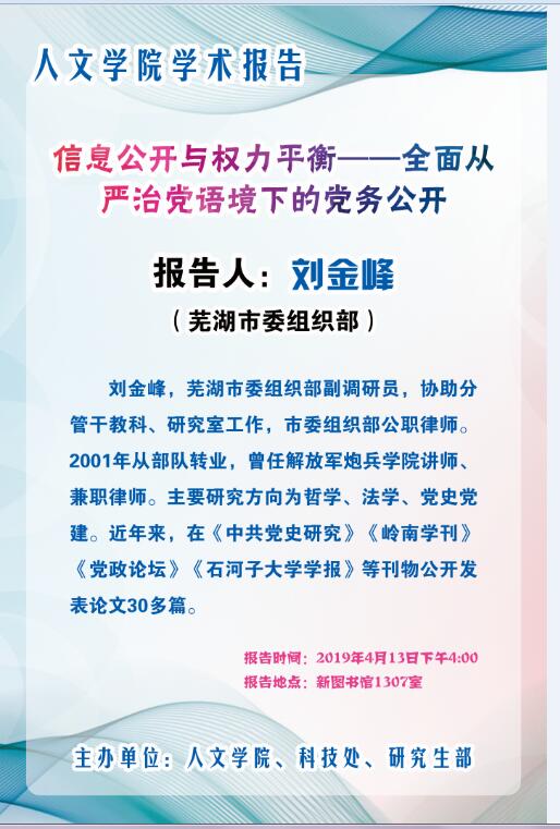 学术报告:信息公开与权力平衡——全面从严治党语境下的党务公开