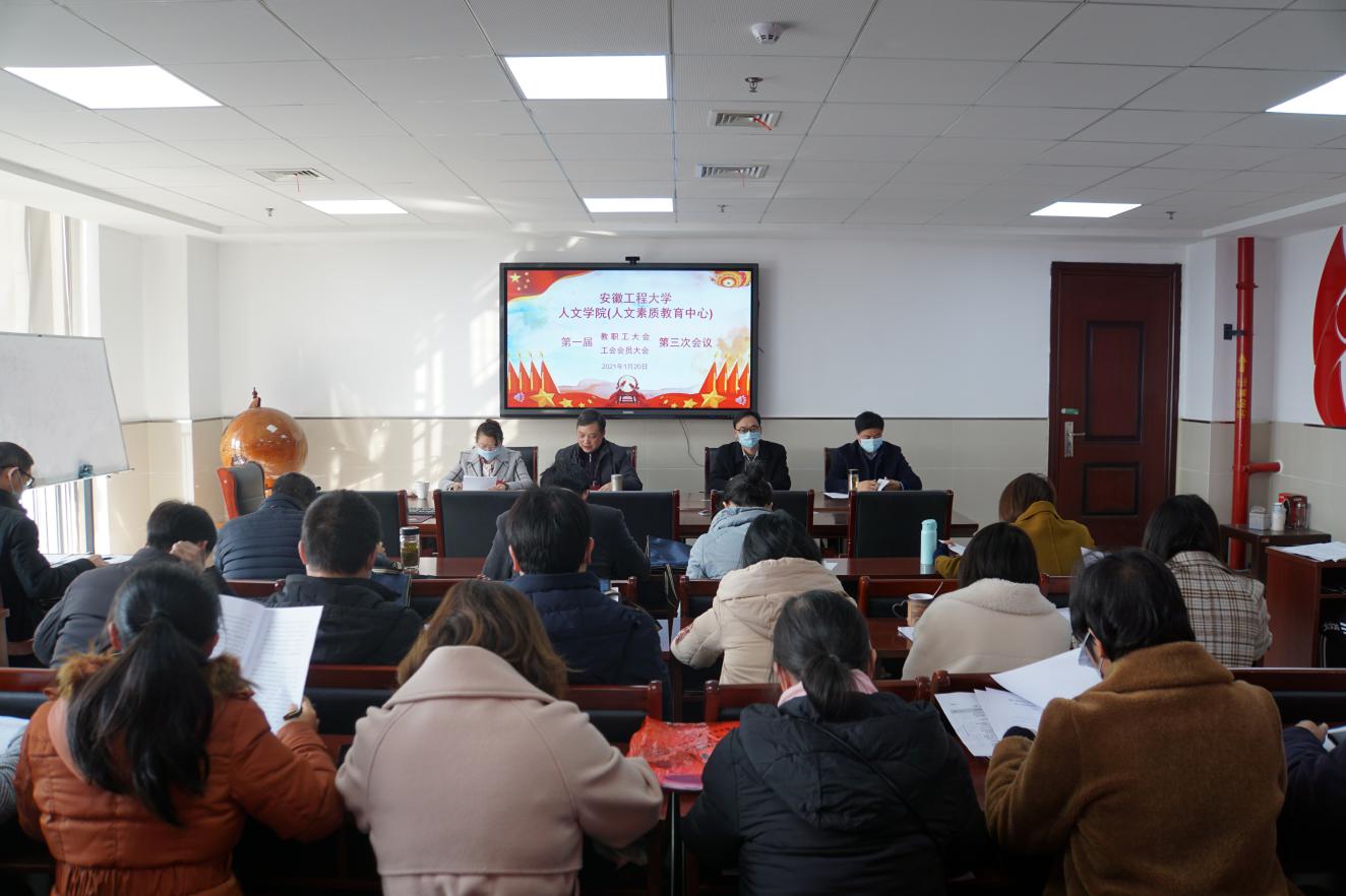 1月20日,人文学院第一届教职工大会暨工会会员大会第三次会议在图书综合楼1307会议室召开,学院全体教职工、工会会员参加会议。