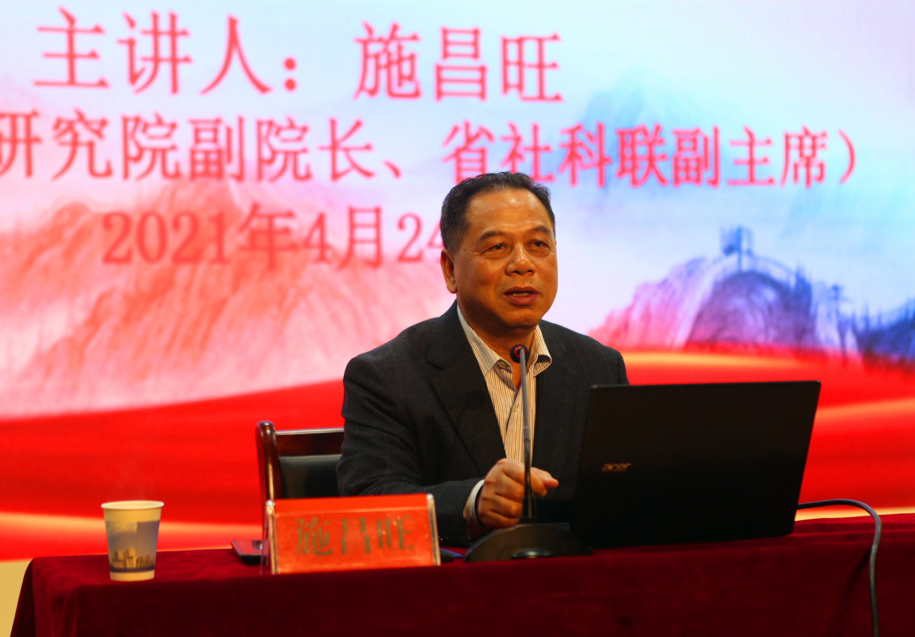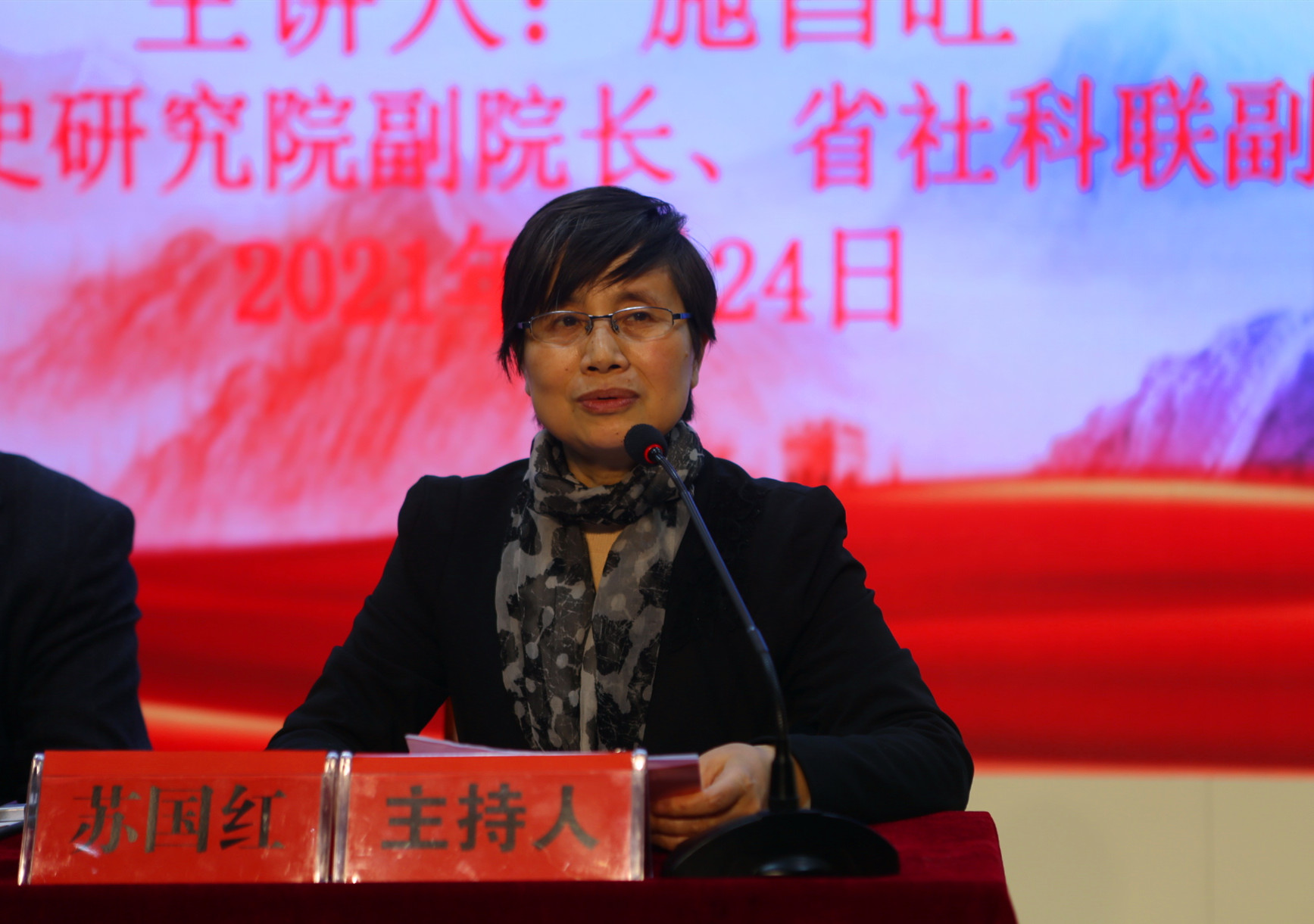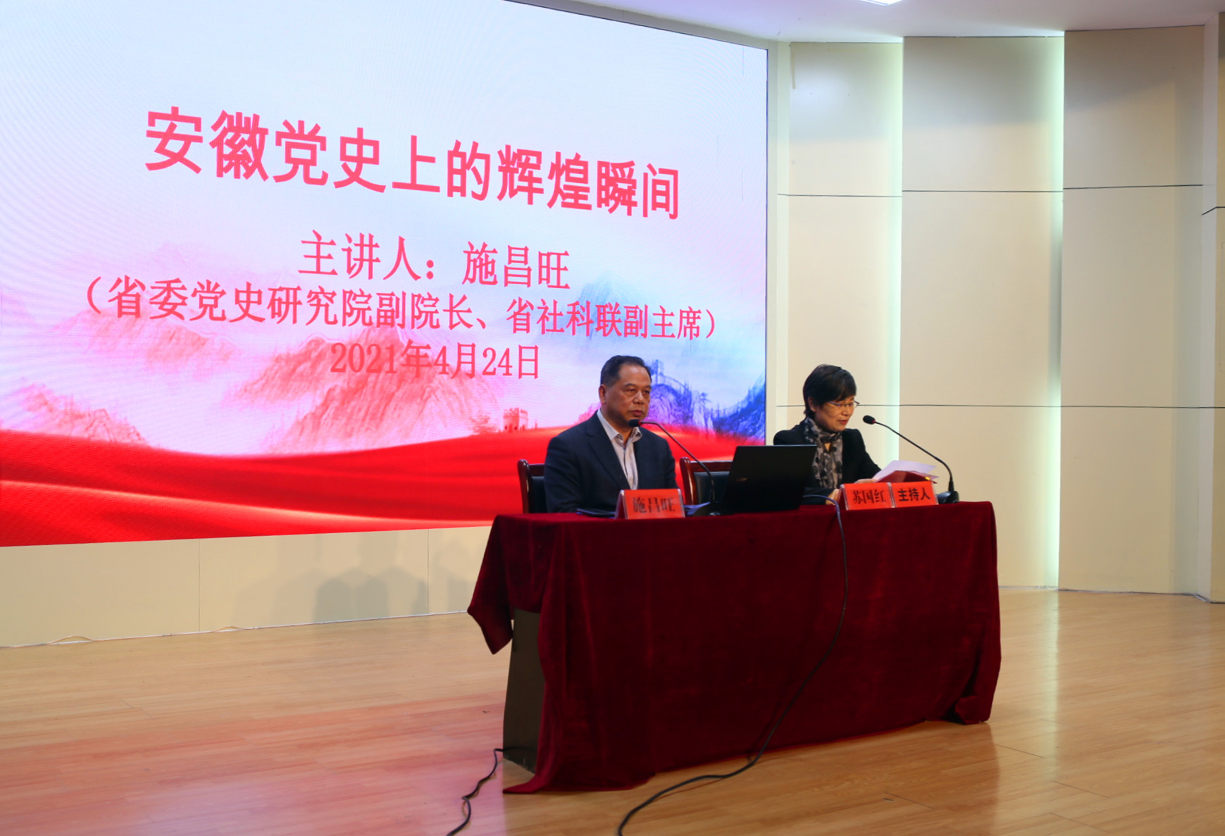 4月24日下午,安徽省委党史研究院副院长、安徽省社会科学界联合会副主席施昌旺应邀来校作题为《安徽党史上的辉煌瞬间》的党史学习教育报告。校党委副书记苏国红主持报告会。