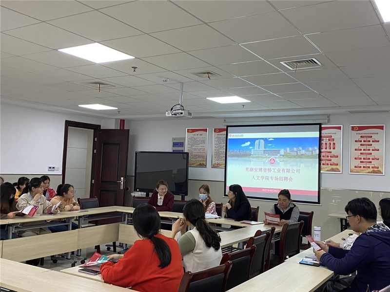 426日下午,应人文学院邀请,芜湖安博帝特工业有限公司到人文学院进行专场招聘宣讲和现场面试,会议在图书馆1415举行。