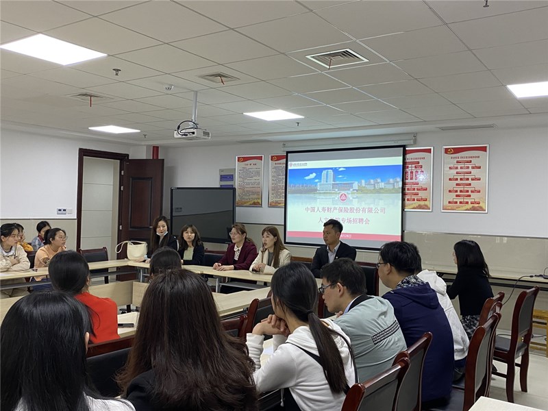 为了进一步推进就业,应人文学院邀请, 426日下午,中国人寿财产保险公司到人文学院组织专场招聘和现场面试,招聘会由学院党委副书记金艾裙主持,2021届毕业班部分同学参加了招聘会。