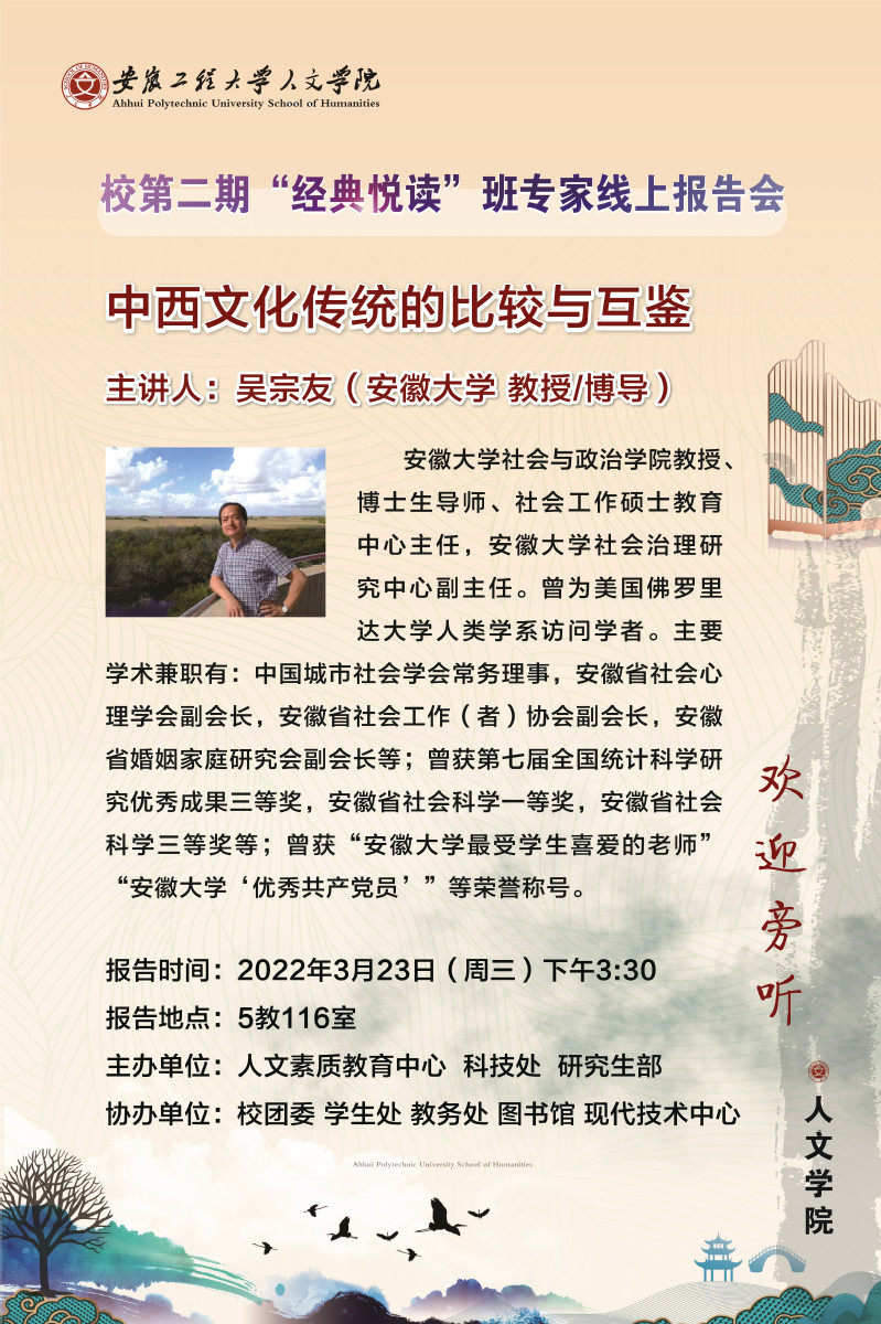 校第二期“经典悦读”班专家线上报告会——中西文化传统的比较与互鉴