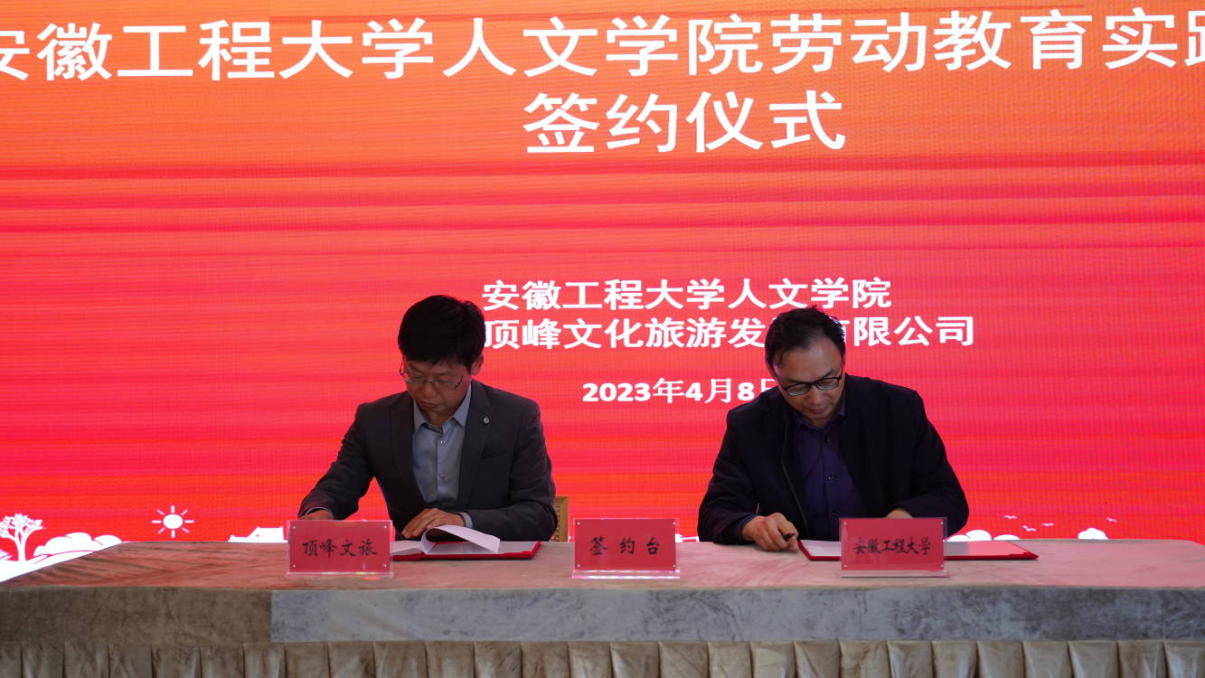 4月8日上午,我校人文学院与顶峰文旅发展有限公司就共建劳动教育实践基地签署协议并进行授牌。人文学院院长、人文素质教育中心主任刘军,鸠兹湾艺创共富乡村项目经理朱新根参加签约授牌仪式。根据协议,双方将在课程体系建设、实践教学建设、指导教师培训等方面开展合作,创新校地合作模式,实现共建共享共赢。