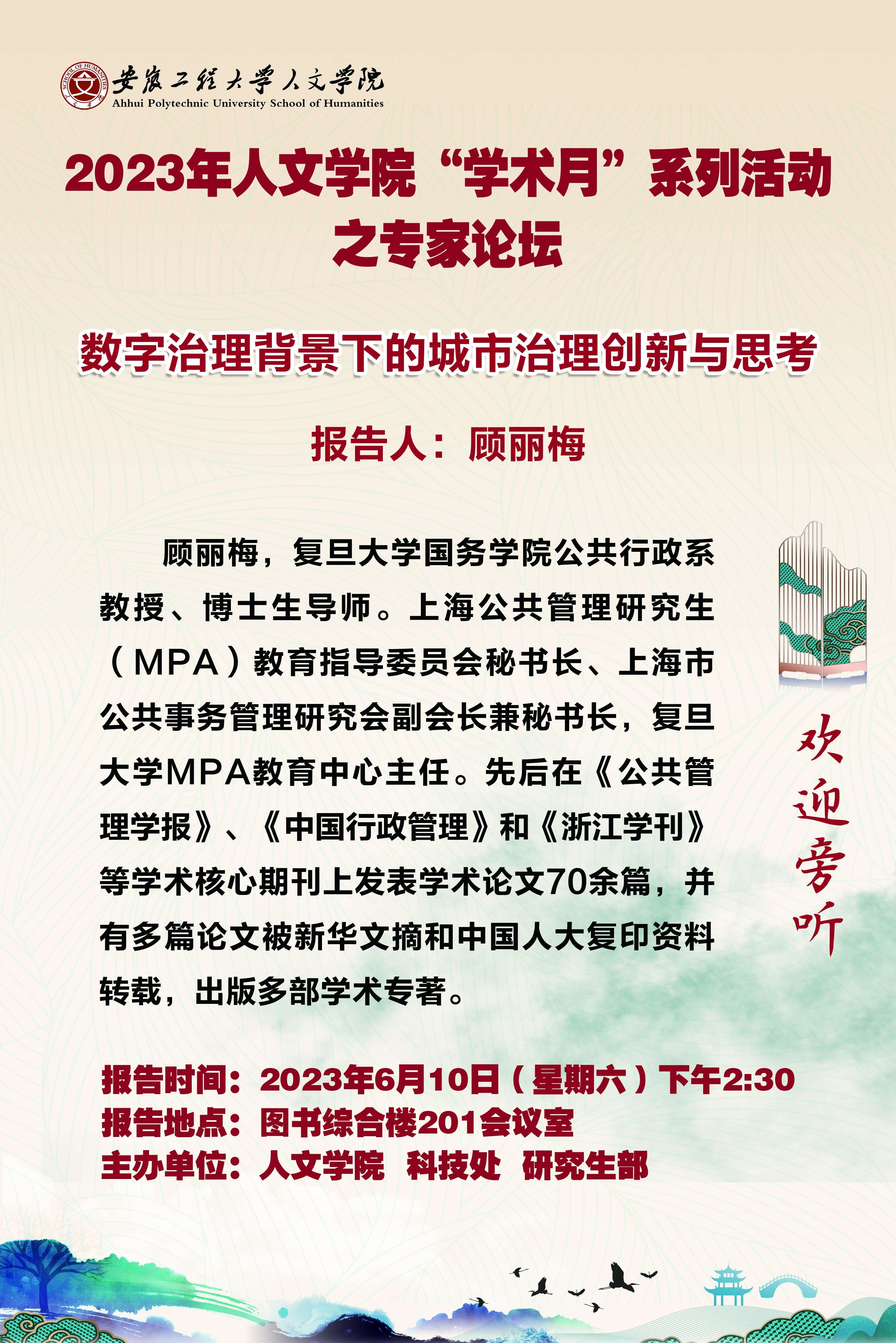 学术报告预告:2023年人文学院“学术月”系列活动之专家论坛——数字治理背景下的城市治理创新与思考