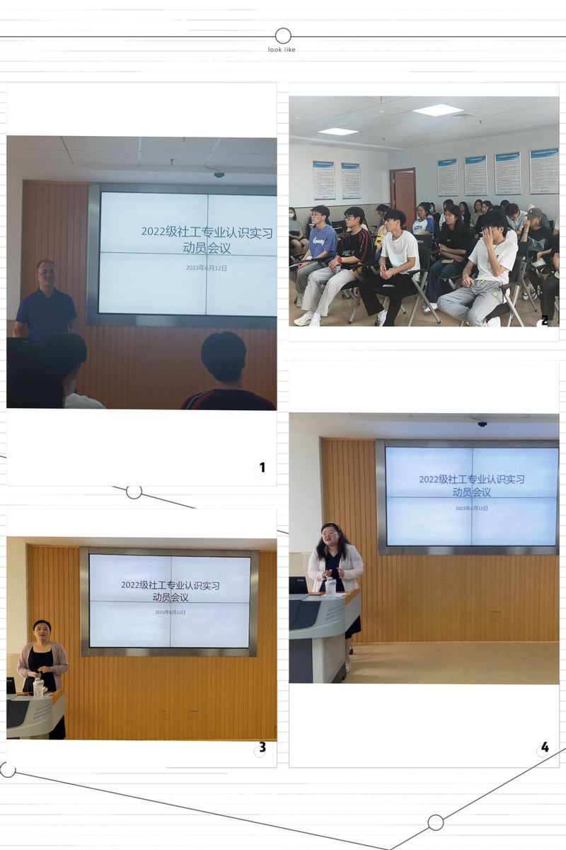 6月12日上午,专业认识实习动员布置会在新图书馆1210召开。社会工作系主任周纯、教师蒋艳分别就专业认识实习的重要意义、专业认识实习前的资料准备进行了发言。李飞从专业认识实习的作用、专业认识实习日程安排及其注意事项等方面进行了详细介绍,并鼓励大家多看、多听、多交流、多思考,从而不断加深专业认识。