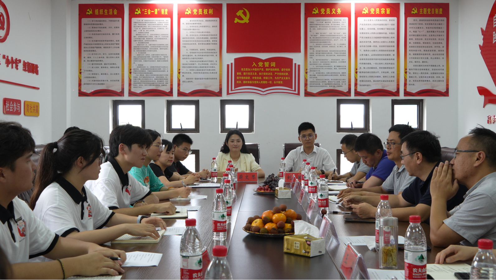 为深入开展学习贯彻习近平新时代中国特色社会主义思想主题教育,贯彻落实《教育部办公厅关于开展习近平总书记与大学生在一起学习分享活动的通知》要求,教育师生在学习分享中参与实践,在实践中创新,在创新中实践,引导和帮助广大青年学生在社会实践中受教育、长才干、做贡献,实现强国一代强国有我的升华。78日下午,校党委常委、副校长郑健,校纪委副书记、材料与工程学院党委书记郭广春,校党委宣传部副部长王燕,校学生处副处长杜松涛,数理与金融学院党委副书记何志恒,人文学院党委副书记王中江,团湾沚区委书记刘敏,红杨镇党委委员、组织委员蔚文琴,赴湾沚区红杨镇看望慰问人文学院暑期三下乡”“新时代乡村变迁与振兴调研团队。本次走访慰问以座谈会形式开展,会议由校团委副书记李恒奎主持。