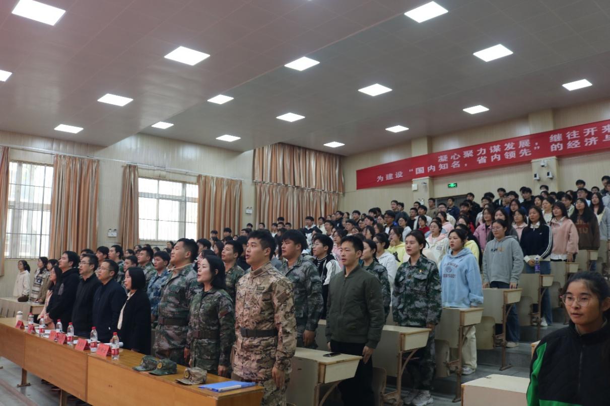 为落实“三抓”工作要求,推深做实“三全六专”育人实践,发挥退役大学生示范引领作用, 探索国防教育与思政融合的新路径,1122日下午,人文学院在2教报告厅召开“军歌嘹亮团”启动仪式,并进行首场思政与国防融合的榜样故事红色宣讲活动。人文学院党委书记刘一,党委副书记王中江,辅导员章雪平、余丹丹、范夏勋,以及人文学院全体退役大学生、2023级全体新生参加了本次活动。活动由学院团委副书记利昕云主持。
