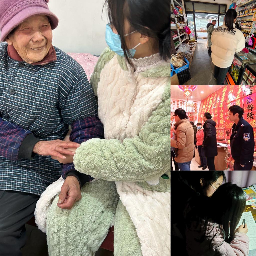 127日,在合肥市巢湖市栏杆集镇青岗村委会工作人员的带领下,宣传部委员行管231王倩芸村里空巢老人送温暖,陪同老人聊天解闷,提供精神慰藉和心理抚慰;在合肥市巢湖市柘皋镇,宣传部委员电商法231蒋依婷协助当地市场监管所等部门工作人员,以辖区校园周边的商铺、小吃店、文具店为重点,对食品安全、经营环境等进行检查;在阜阳市颍上县慎城镇光明社区,综合部委员电商法231陈睿雅参与寒假课业辅导志愿服务活动,耐心地为孩子们解疑,帮孩子们更好地完成寒假作业。