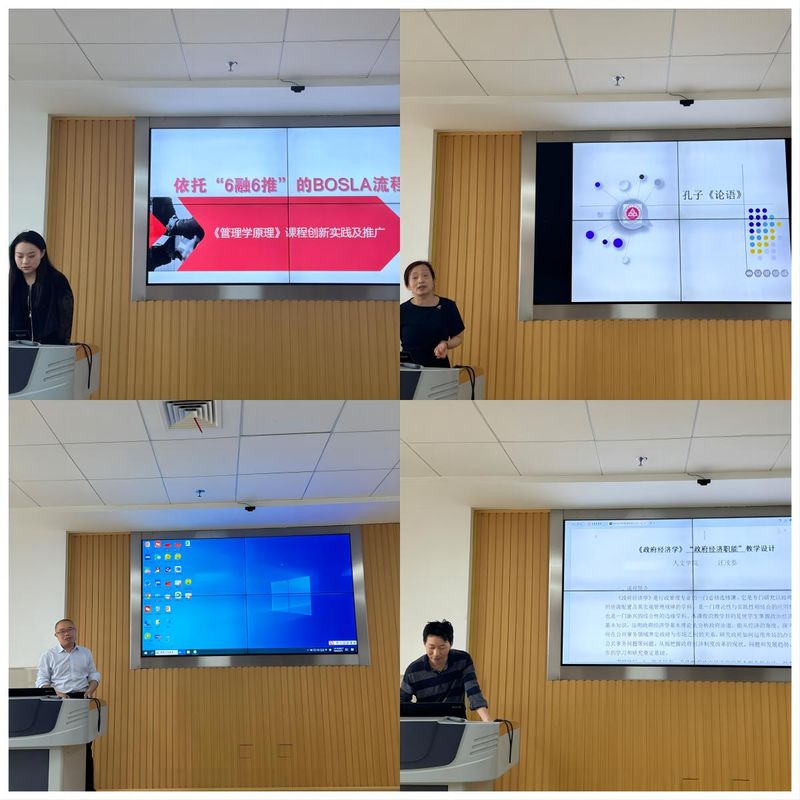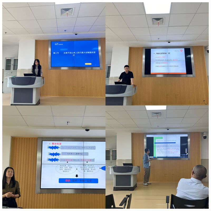 公管系对此次活动高度重视,提前谋划,要求每位老师根据所授课程准备教学设计和8分钟的教学展示。老师们积极响应,精心准备,磨课活动元素丰富,精彩纷呈。2024年安徽省高校教师教学创新大赛一等奖获得者张茜老师做了“依托‘66推’的BOSLA流程——《管理学原理》课程创新实践及推广”的高水平分享,赢得老师们的一致好评。安徽省课程思政教学名师闫石老师介绍了《大学语文》的课程思政教学设计,其思政元素的合理挖掘、巧妙融入,特别是对AI技术的应用,给老师们带来很大启发。其他老师分别展示了课程的总体设计思路、课程思政安排、具体章节的授课,整个过程亮点频现。