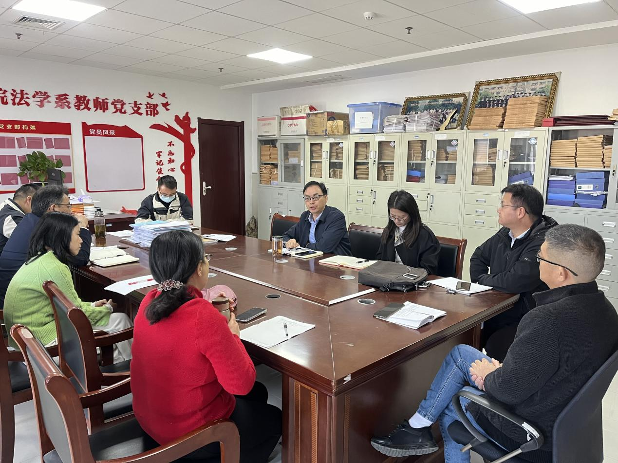 为深入学习贯彻习近平总书记考察安徽重要讲话精神,以高度的政治责任感推进法学专业新文科专业认证工作,11月6日下午,法学系教师党支部在学院1212室召开法学专业认证工作推进会。会议由支部书记张雷主持,法学系教师党支部全体党员、法学系全体教师参加了会议。学院党委副书记、院长刘军到会指导。