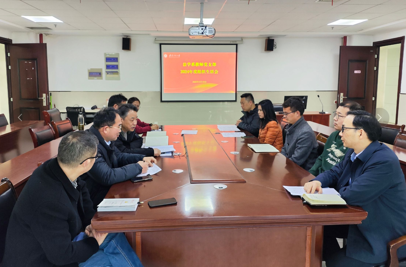 3月19日下午,法学系教师党支部在学院1215会议室召开组织生活会。会议由支部书记张雷主持,法学系教师党支部全体党员参加了会议。人文学院党委副书记、院长刘军到会指导。