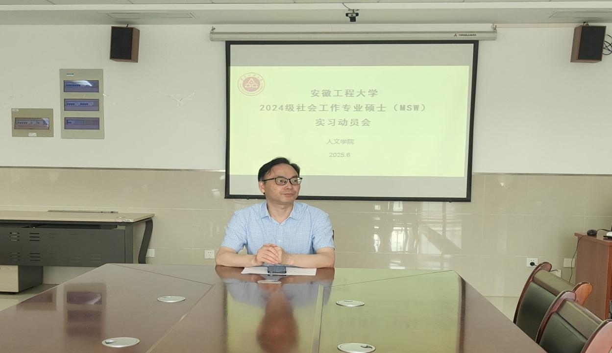 为推进产教深度融合,提升社会工作专业硕士研究生实践能力,实现理论知识与实务工作的深度交融,6月24日,人文学院在1215会议室举行2024级社会工作专业硕士实习动员会。人文学院院长刘军作动员致辞,社会工作系教师周纯主持会议。
