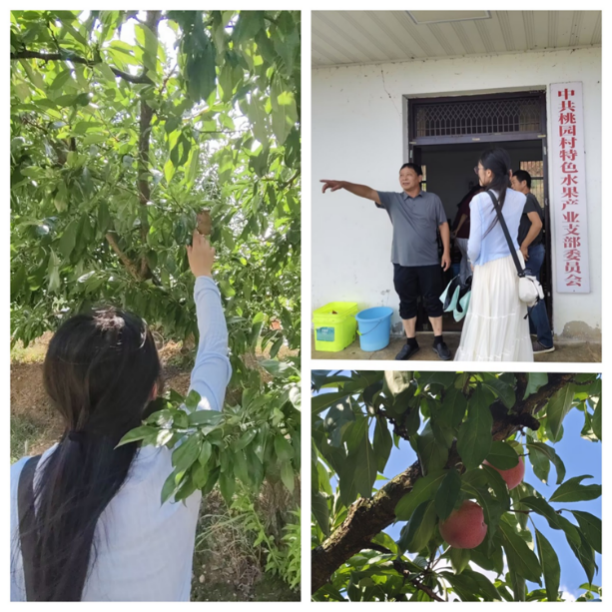 在村委会工作人员的细致讲解下,团队成员了解到桃园村的特色产业、发展规划,以及大量新鲜水果由于销售渠道单一、信息闭塞而面临滞销风险。团队成员深入田间地头,通过实地走访、入户问询、交流访谈等多种方式,深入调研种植品种、产量及销售困境。