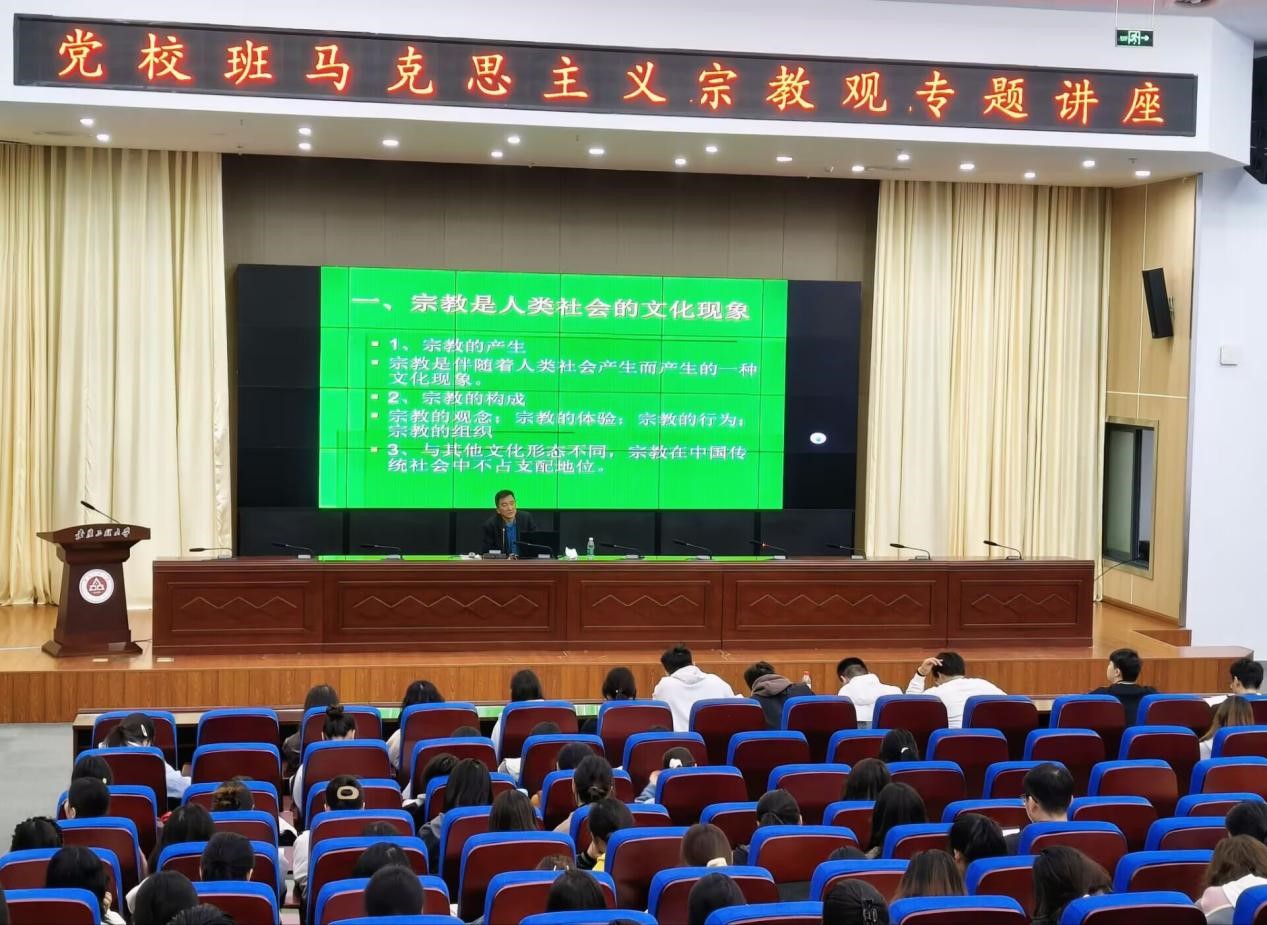 刘聪教授以“马克思主义宗教观与党的宗教政策”为主题开展讲解,首先以宗教基本知识为铺垫,阐释宗教的构成要素,其次聚焦马克思主义宗教观核心,解读马克思、恩格斯关于宗教本质、根源的经典论述。他还结合身边的案例,将宗教与邪教对比,警醒同学们要坚定立场,坚决抵制非法邪教活动。最后结合我国国情,解读新时代党的宗教工作方针,并着重强调广大共青团员作为党的助手和后备军,要自觉用辩证唯物主义和历史唯物主义的科学世界观武装头脑,深刻理解共产主义信仰的理论内涵与实践价值,让科学信仰成为成长路上的精神指引。