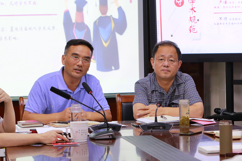 学院院长王传玉解读了《数理学院“对标‘六要’标准、争做‘四有’好教师”专题教育活动方案》;学院副院长吴小太带领大家学习了《习近平总书记关于教师队伍建设的重要论述摘编》。