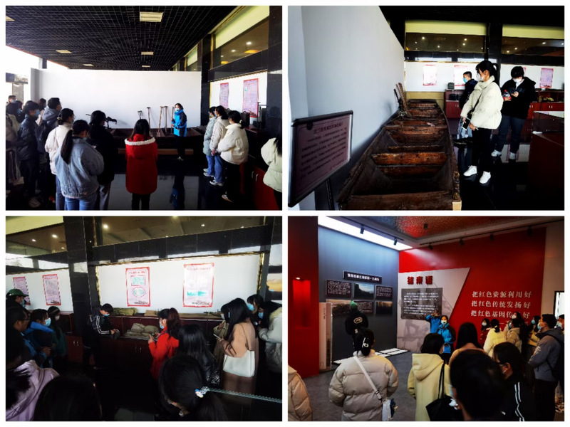 红色体验式教学第一站:红色经典现场教学活动。板子矶渡江战役纪念馆、渡江第一船展览馆是同学们学习党的历史、增强党性教育的重要场所。培训班成员认真聆听关于渡江战役繁昌段战斗以及渡江第一船的现场教学;先后参观了渡江战役纪念馆、渡江第一船展览馆、“渡江战役第一船登陆点”风帆雕塑等。在展览馆,同学们不时地驻足在战斗武器、地图、参战船只、历史文献等珍贵文物史料前,仔细观察学习,实地体验感受。在“百万雄师渡江第一船”登陆点,切身感受“团结一致,同舟共济;不畏艰险,勇于拼搏;坚韧不拔,敢于争先”的渡江第一船精神。