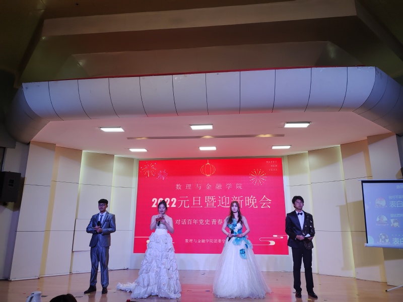 2021年12月25日晚,数理与金融学院在学术报告厅举办2022年元旦暨迎新晚会。校团委书记郭广春,学院党委副书记、纪委书记王燕及院团委老师与数理与金融学院各年级共300余名同学共同出演和观看晚会。