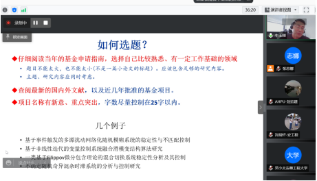 2022年1月21日上午,应数理与金融学院、科技处和研究生部邀请,华东理工大学信息科学与工程学院牛玉刚教授作了题为《关于国基金项目书撰写的几点体会和建议》的基金申报辅导报告。学院拟申报2022年国家自然科学基金的教师参加了本次报告会,报告会由副院长吴小太主持。